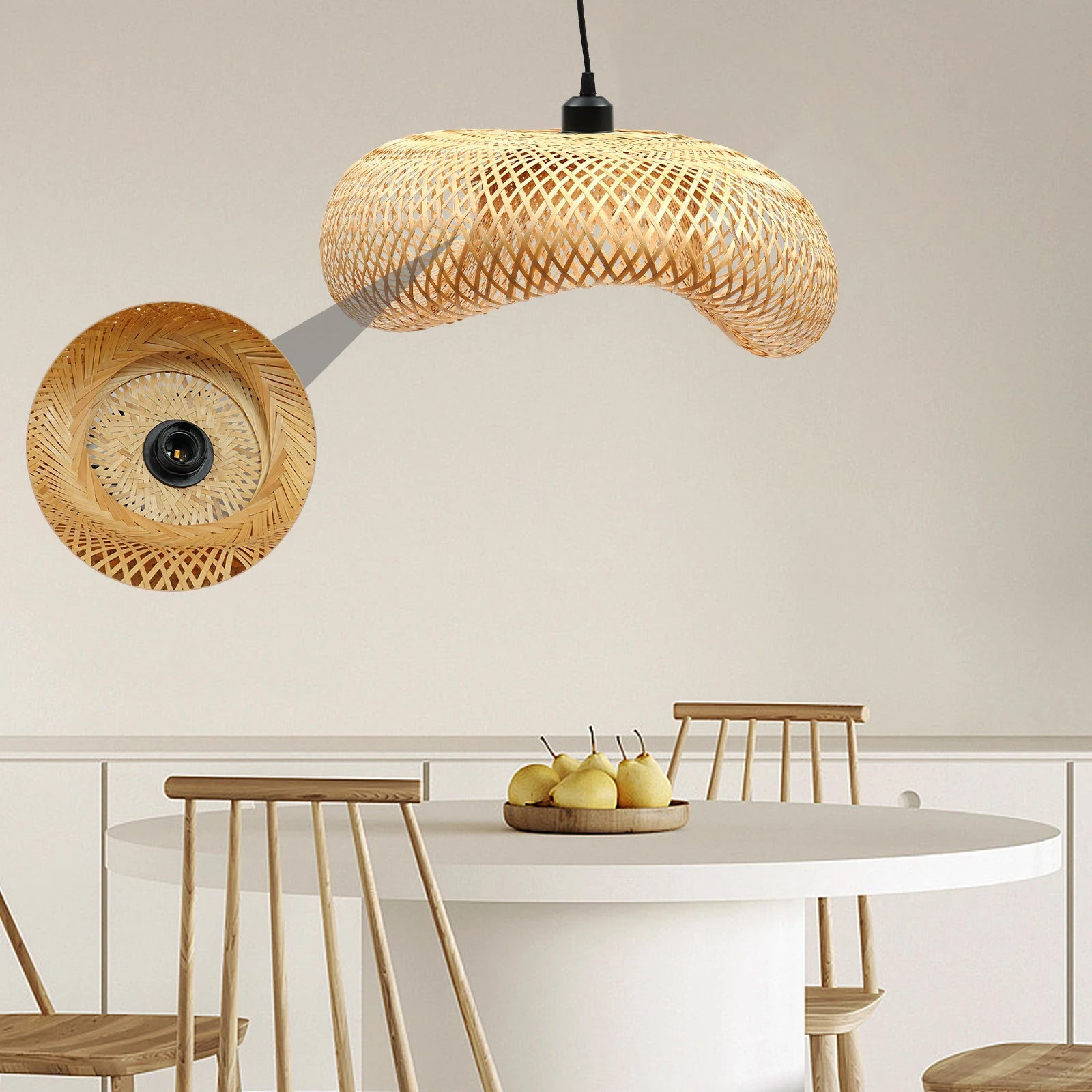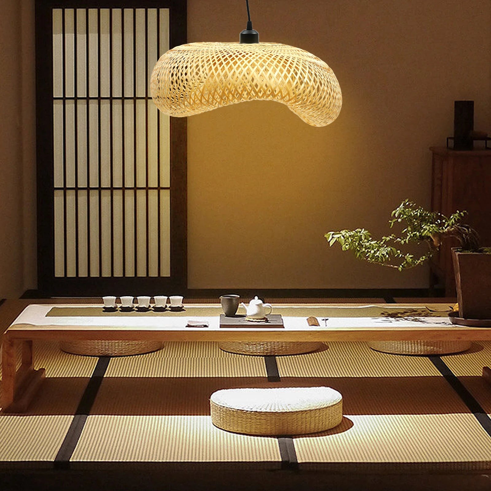 - Hand-woven bamboo silk shade delivers a natural, eco-friendly glow that complements living rooms, bedrooms, and dining areas, creating a calm, inviting atmosphere.