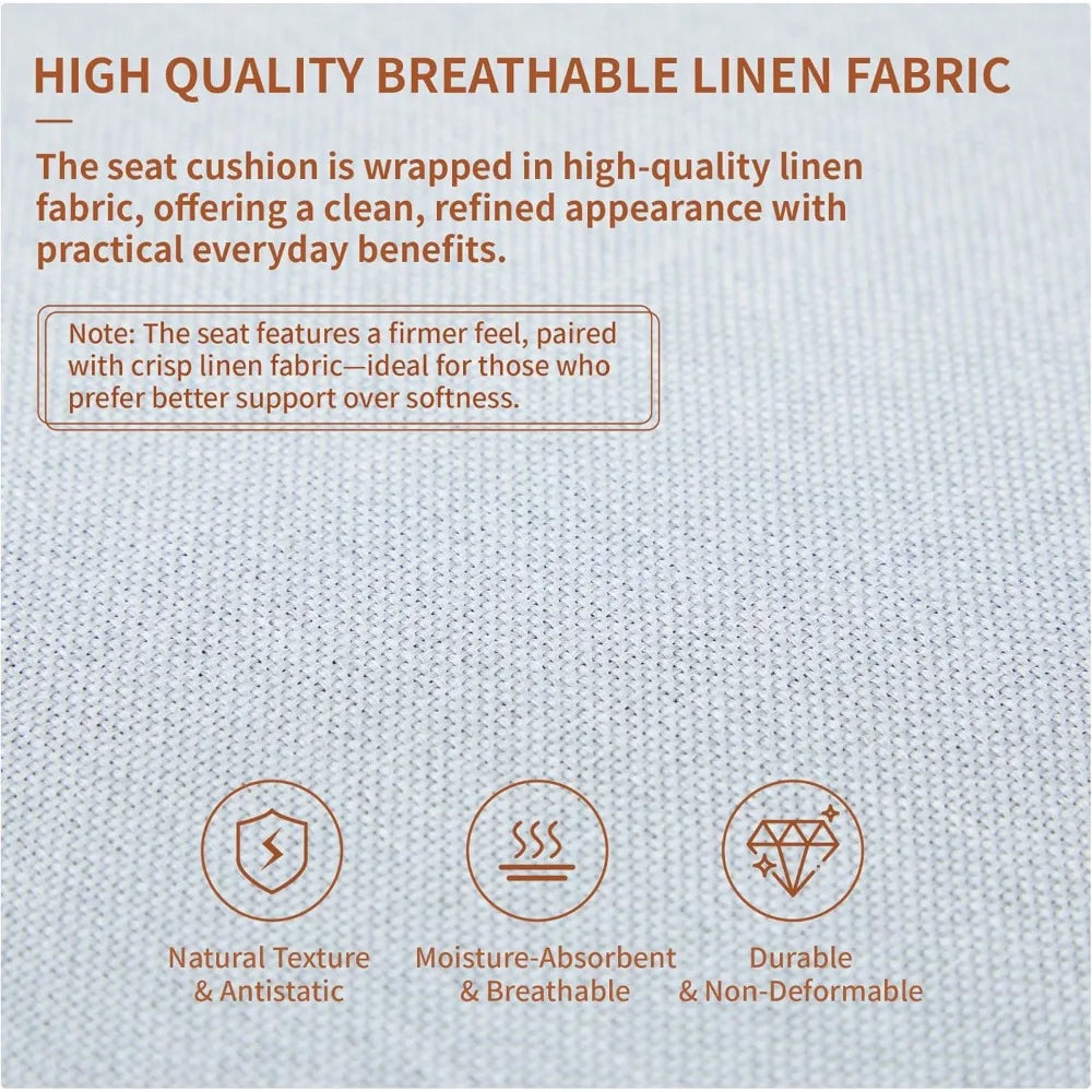 - Gray Linen Upholstery: Firm, supportive seat cushion that promotes good posture during long meals.