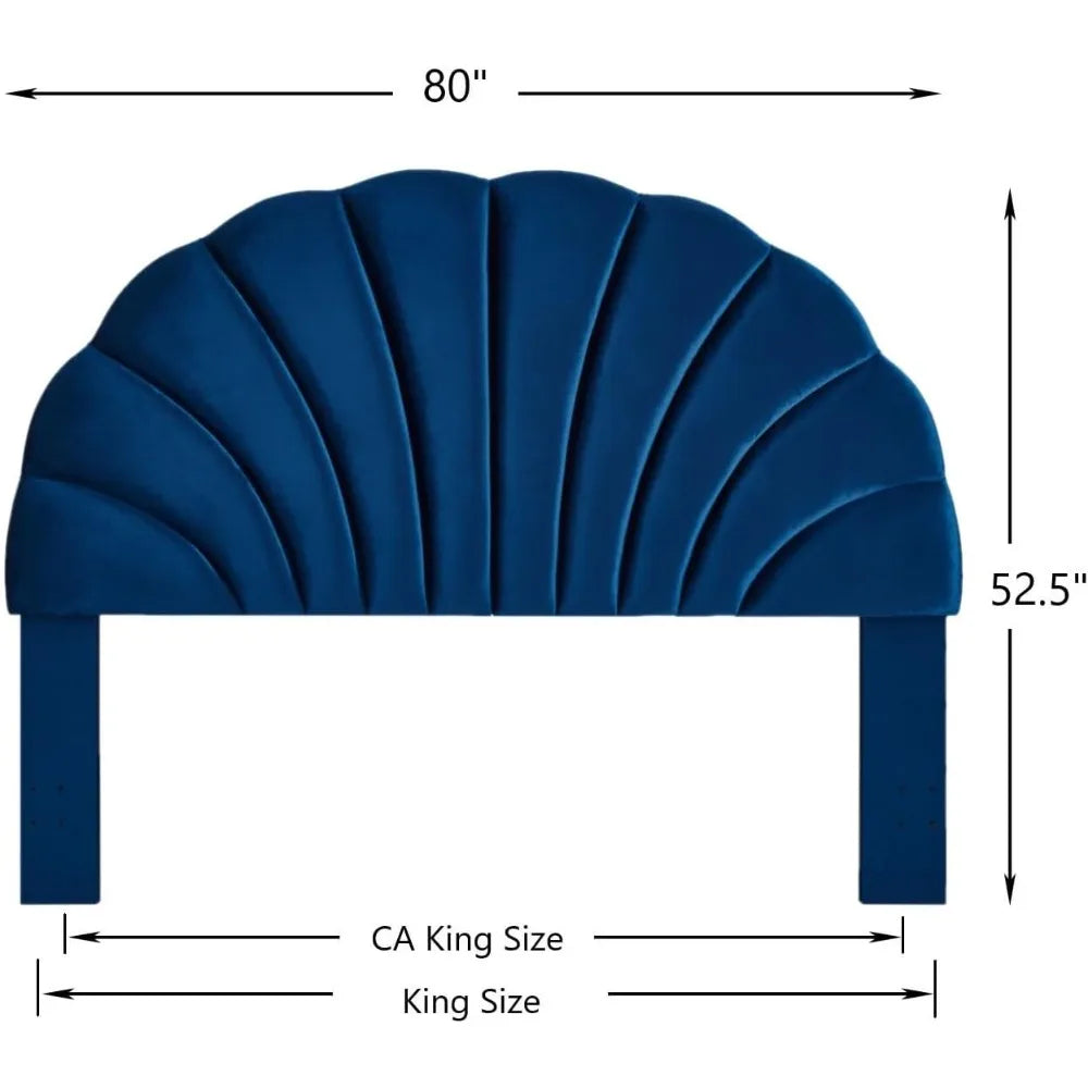 Drift into a serene sleep space with a headboard crafted from soft velvet and TB117 foam that cushions you while remaining durable year after year. A robust wooden frame delivers steady support, so you can lean back during late-night reading in total confidence. Sized for King or CA King beds, it spans about 80 inches wide, stands 52.5 inches tall, and sits 3.75 inches from the wall, creating a regal profile with a crown-like silhouette and delicate petal patterns. Setup is quick and tool-assisted, with included tools and discreet back-access for the legs, and the fabric's plush surface elevates any modern bedroom.