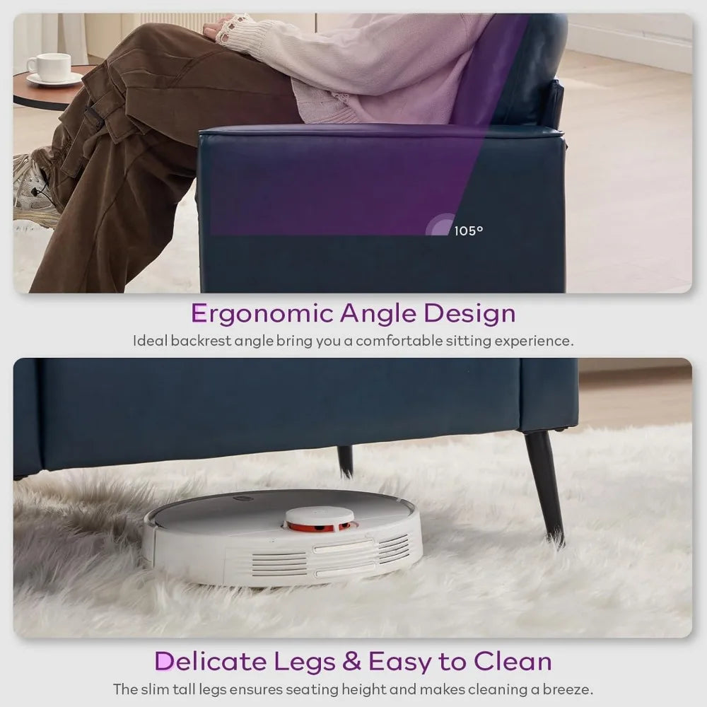 - Mid-century elegance meets everyday practicality: pinch-edge detailing, thick curved armrests, a pillow back, and a refined silhouette for living rooms, offices, or reading nooks.