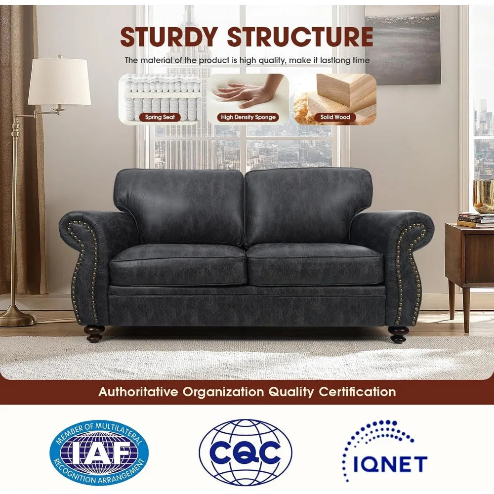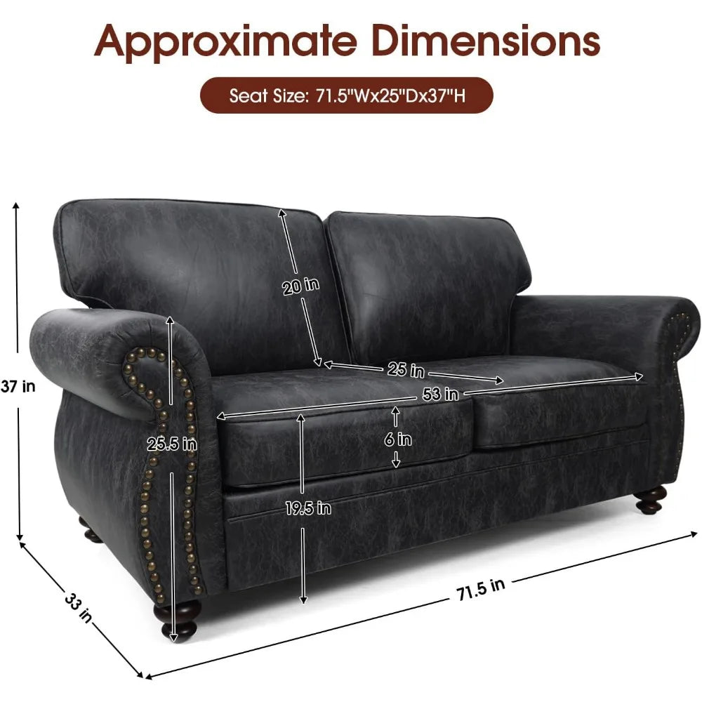Designed for small rooms, this loveseat folds into a recliner or sleeper, perfect for tight spaces in the living room, office, or lounge. Its sturdy solid wood frame provides durable support up to 800 lbs, while a 23" deep seating and a thick backrest, filled with high-density foam, deliver cloud-like comfort. Covered in premium faux leather, it offers a sleek, modern look with easy maintenance and resilience against everyday wear. The 105° ergonomic design supports your posture for relaxed lounging, and the timeless mid-century silhouette with rivet accents complements any decor. Simple assembly is typically completed in about 30 minutes, with responsive 24/7 support if you need help.