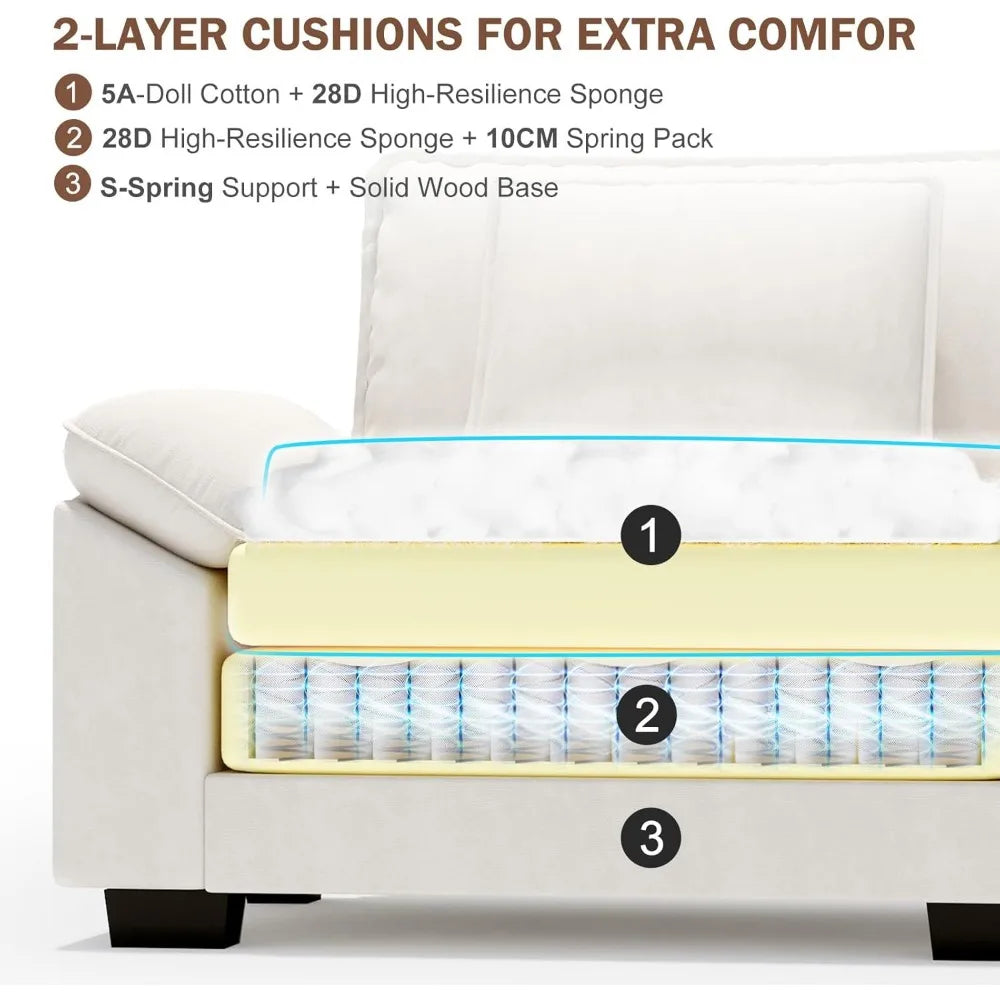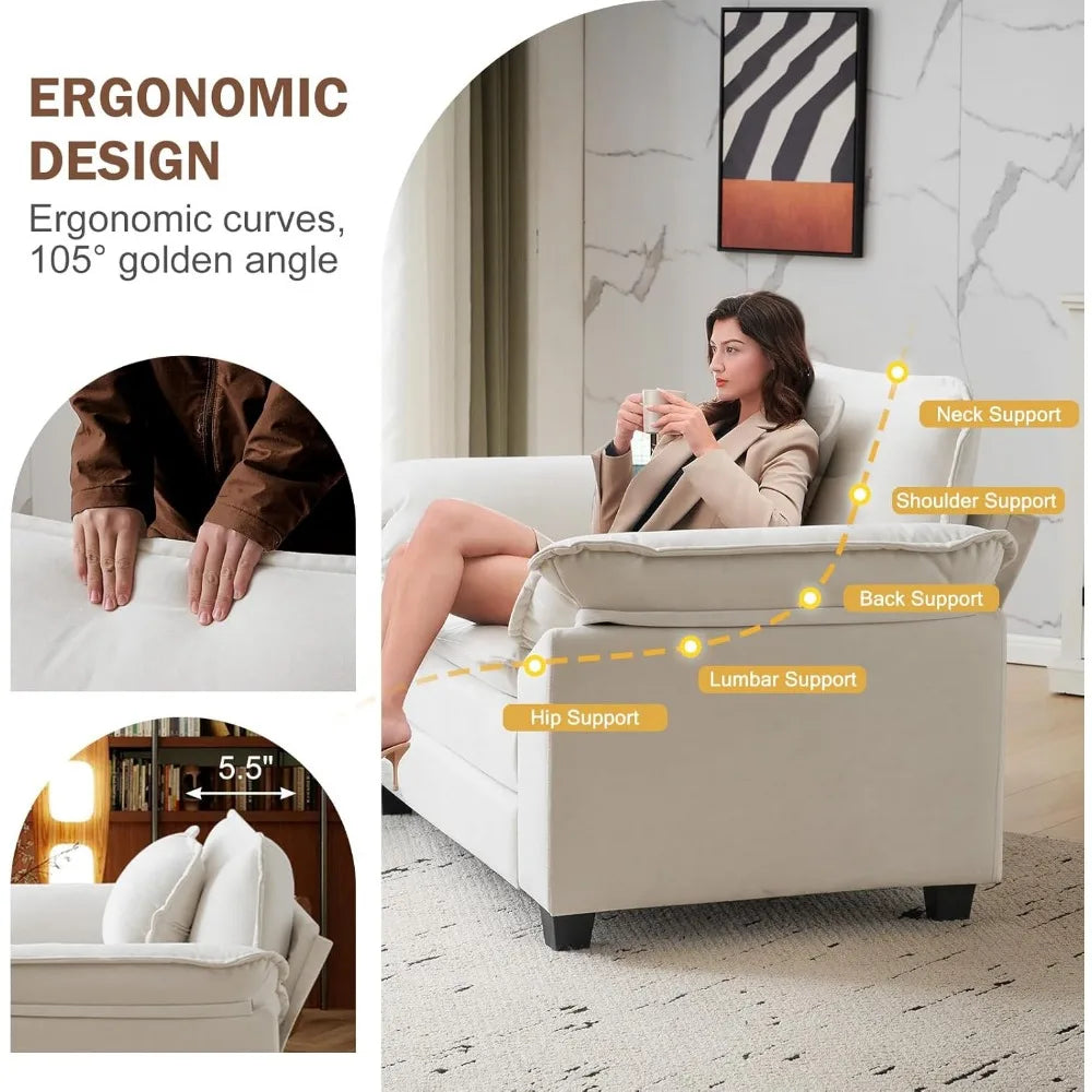 - Plush Dual Cushions and Velvet Comfort: Two-layer cushions with high-density foam deliver soft, cloud-like support; breathable velvet fabric is hypoallergenic and resistant to pet scratches.