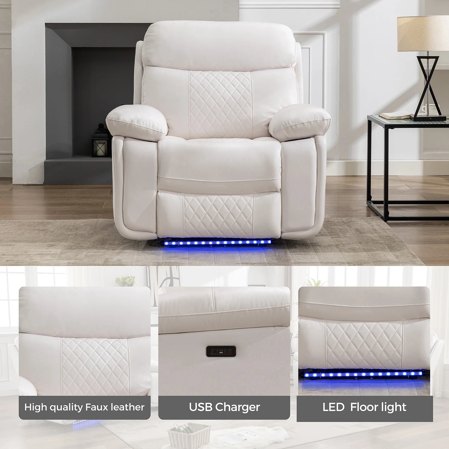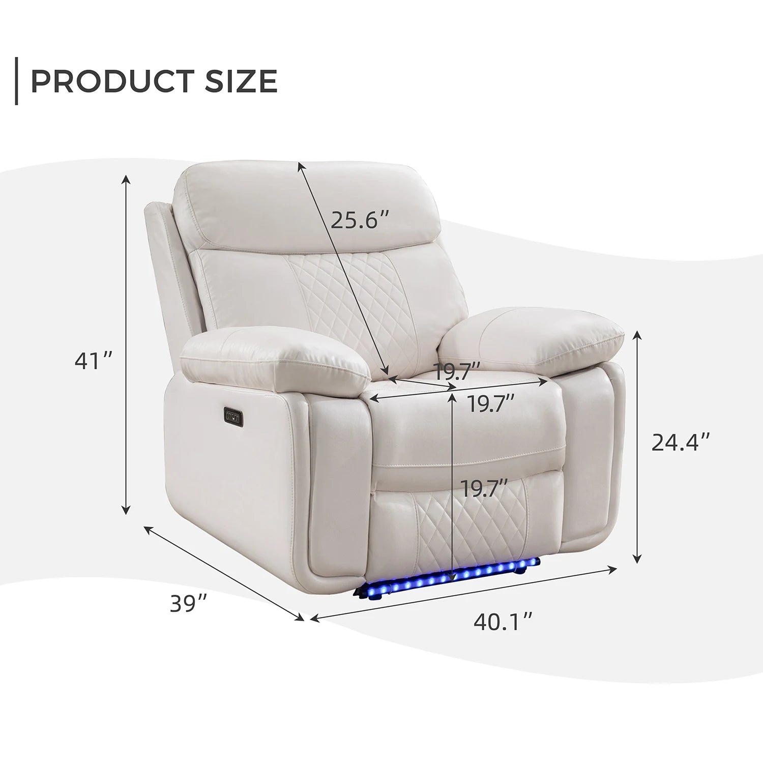 Designed for versatile spaces, this power recliner blends premium materials with contemporary silhouette to elevate any living room, home theater, or office. You’ll enjoy plush faux leather, a sturdy metal frame, and high-quality filling that deliver lasting comfort and support. The built-in USB port keeps your devices charged while you wind down, so you won’t miss a moment of your favorite show. Recline from 110 to 160 degrees, with a leg rest that elevates up to 90 degrees for personalized comfort. The wide seat, generous back height, and 300 lb weight capacity ensure a relaxed, secure fit.