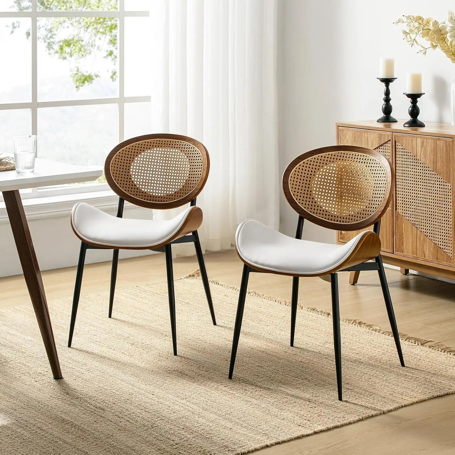 Luxu Set of Two Modern Chairs with Rattan Backrests—elevate your dining or living space with timeless comfort and contemporary style.