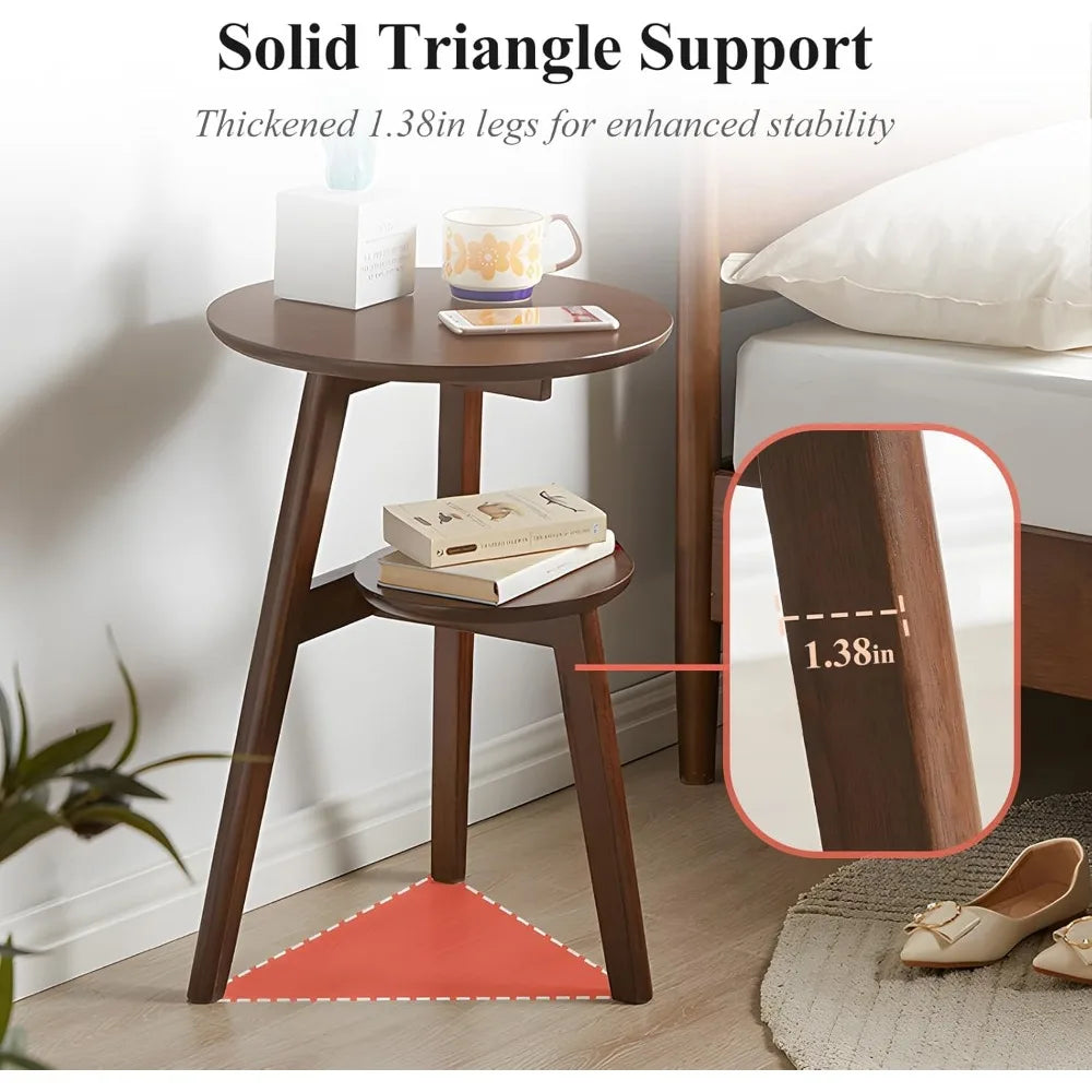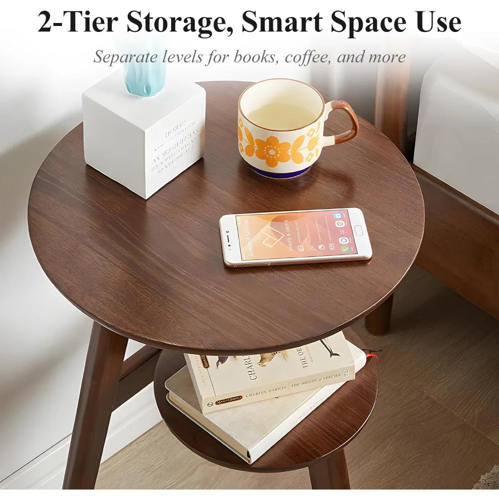 - This round end table, crafted from durable rubberwood with a walnut finish, offers sturdy support and a warm, natural appeal for your living space.