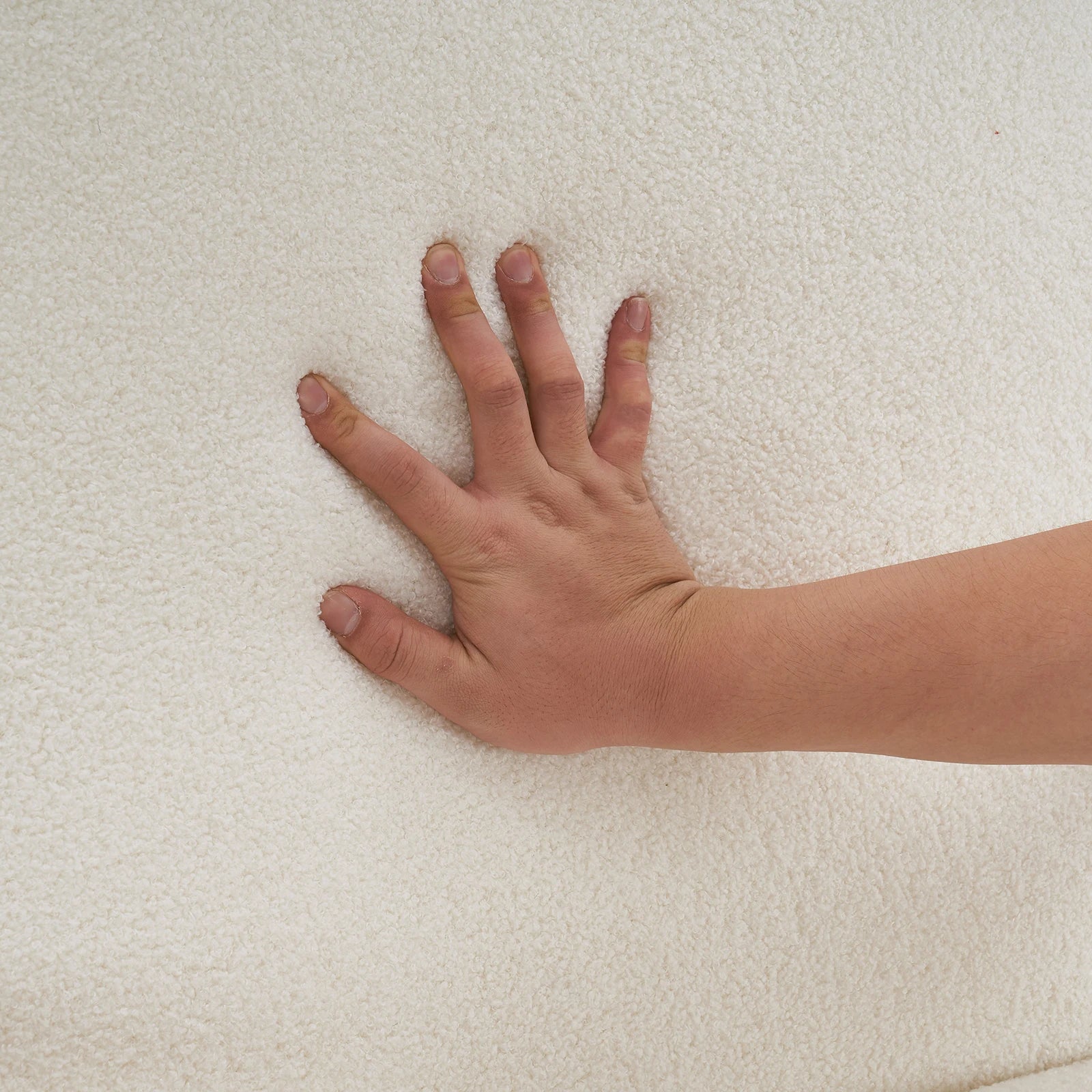 - Creamy-white teddy fleece upholstery brings warmth and a luxe look to any room.