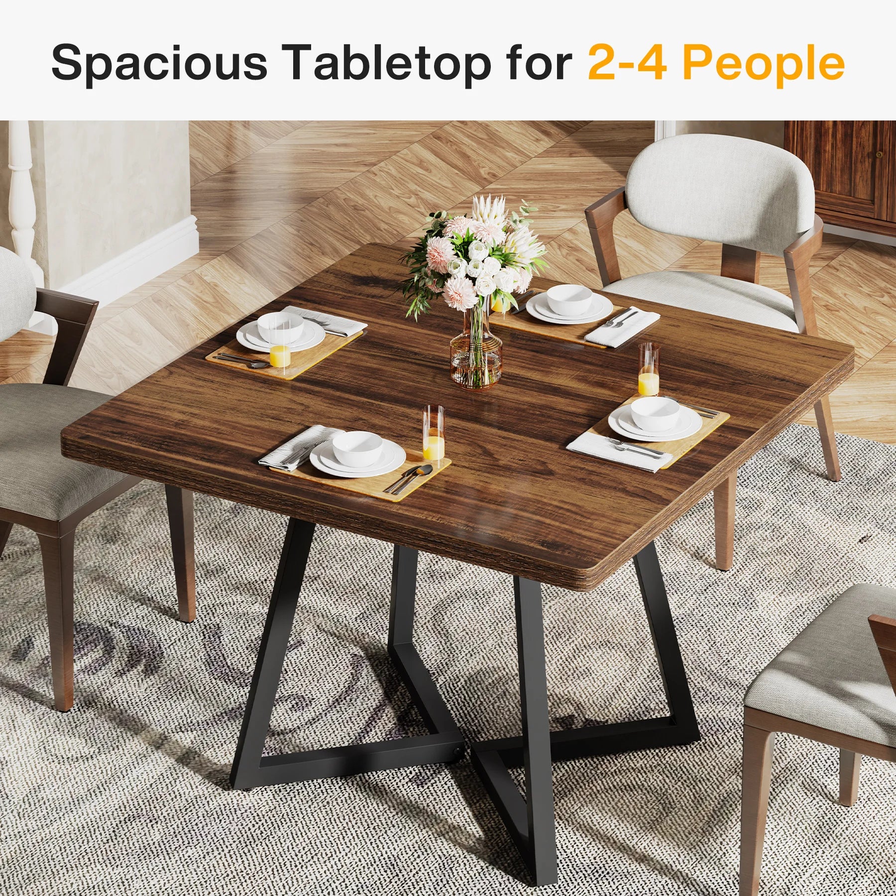- Seats up to 4 with a compact footprint: 31.49" W x 31.49" D x 29.52" H ensures comfortable dining for 2-4 while optimizing space.